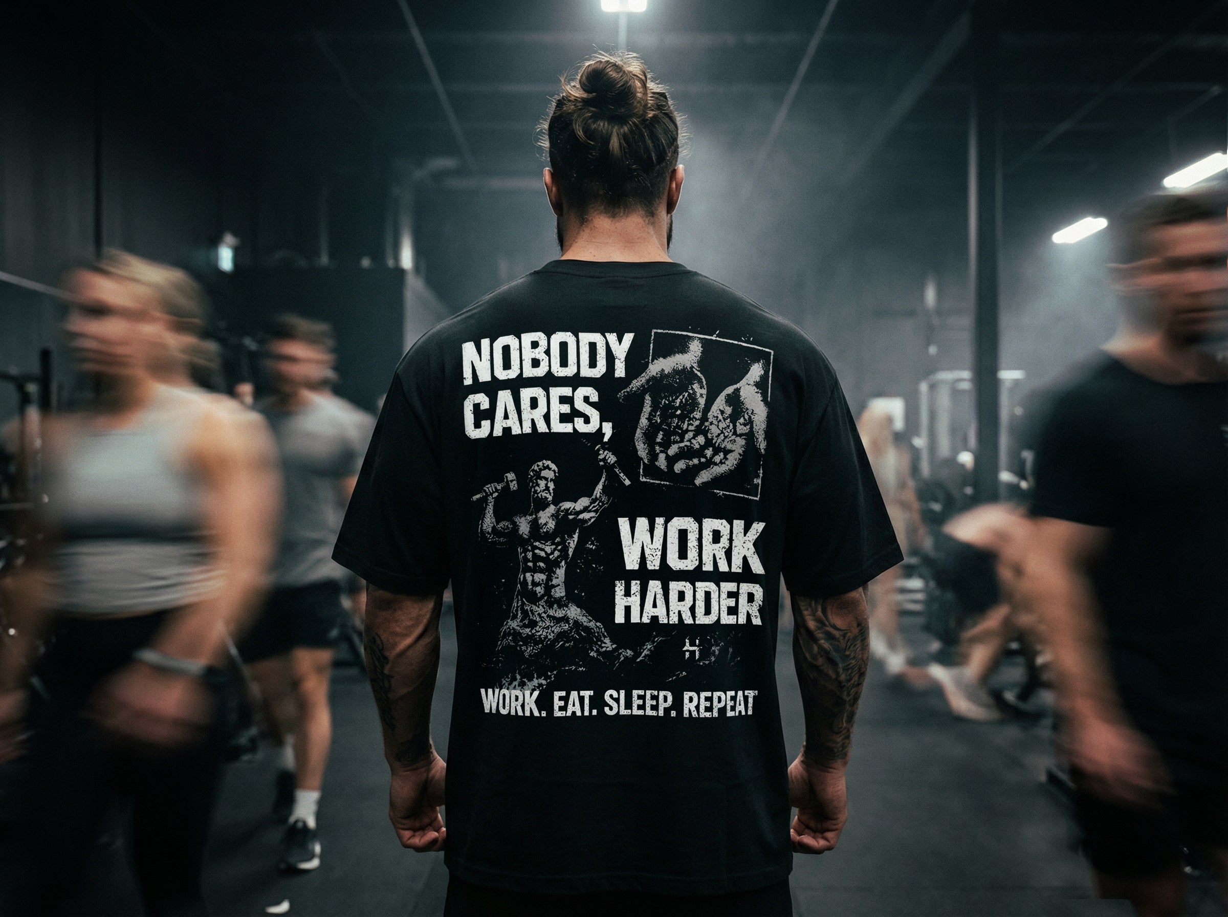 "NOBODY CARES WORK HARDER" BLACK OVERSIZED T-SHIRT