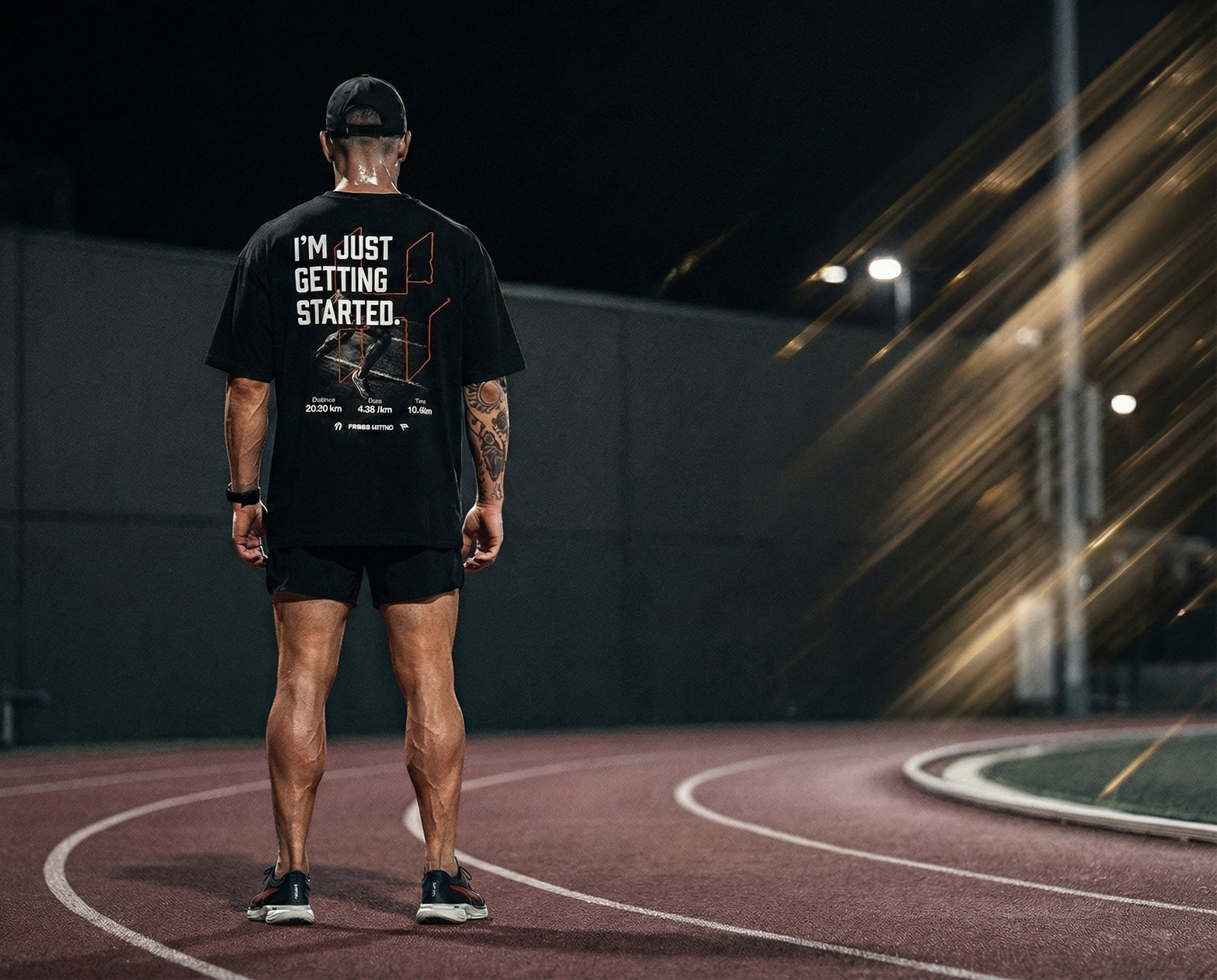 "I'M JUST GETTING STARTED" BLACK OVERSIZED T-SHIRT