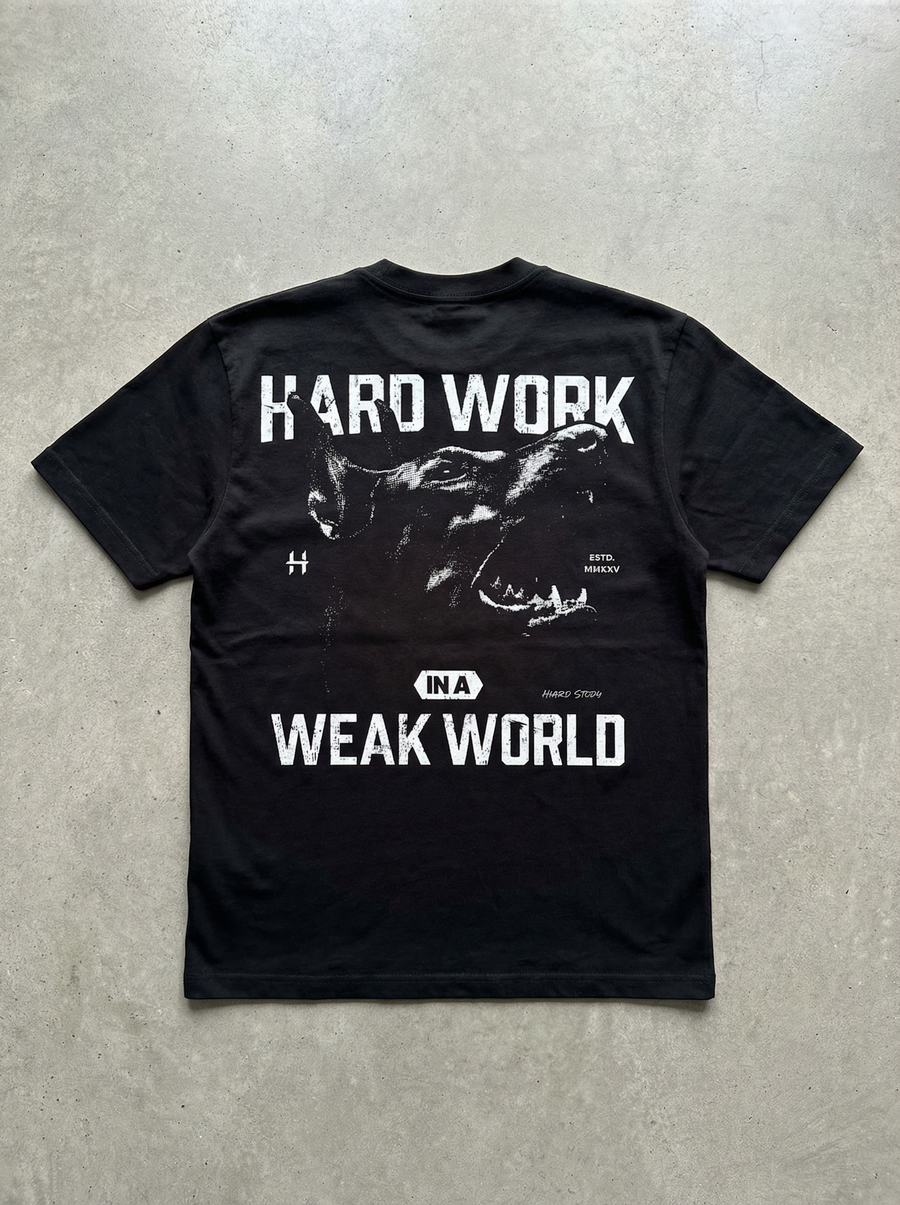 TRICOU OVERSIZED "HARD WORK IN A WEAK WORLD" NEGRU